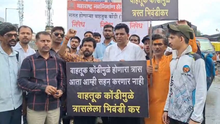 भिवंडी में ट्रैफिक जाम और गड्ढों पर फूटा जनता का गुस्सा, अंजुरफाटा और मानकोली नाका पर सड़क पर उतरे हजारों लोग