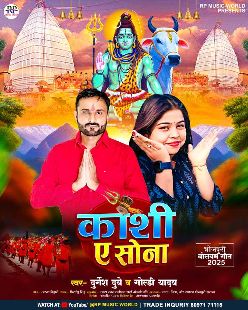 पटना। सावन के पावन अवसर पर भोजपुरी संगीत प्रेमियों के लिए एक शानदार तोहफा लेकर आ रहे हैं लोकप्रिय गायक दुर्गेश दुबे और गायिका गोल्डी यादव। आरपी म्यूजिक वर्ल्ड के बैनर तले तैयार किया गया बोलबम गीत “काशी ए सोना” 2025 में रिलीज़ होने जा रहा है, जो शिव भक्तों के बीच विशेष आकर्षण का केंद्र बनेगा।
