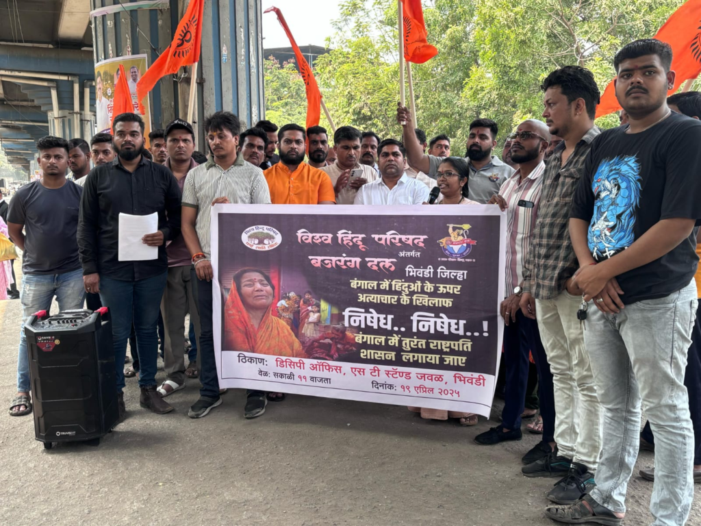 पश्चिम बंगाल में हिंदुओं पर अत्याचार के खिलाफ विश्व हिंदू परिषद का भिवंडी में प्रदर्शन